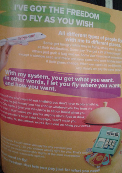 Просто за это приходится доплачивать, как за дополнительные опции. Их идею о том, что пассажиры не всеми типовыми услугами в полёте пользуются, вместе с отсутствием бизнес-класса, я нахожу разумным. Но лишь отчасти.