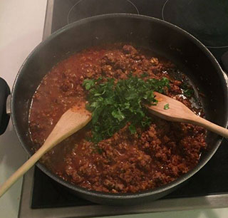 Шаг 5: Добавляется мелко порезанная петрушка и конфорка выключается.
