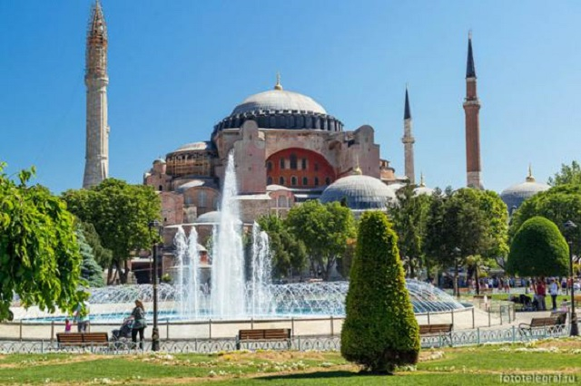 Собор Святой Софии находится в центре Стамбула, в районе Султанахмет.
