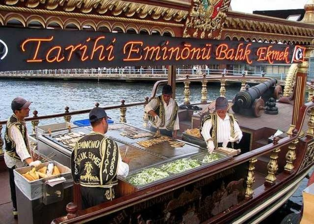 Название у этого в высшей степени демократичного и народного блюда столь же незамысловато, как и рецепт, - «балык – экмек». Ну, то есть – «хлеб с рыбой». Полезно и сытно, ароматно и калоритно. От смеси двух слов - «колорит» и «калории». Два в одном. Плюс к тому, исключительно дешево – буквально несколько лир. Даже берегущим свои талии девушкам стоит попробовать хотя бы разок.