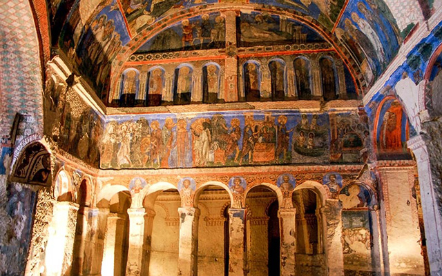 Среди буйной зелёной растительности просматриваются входы в церкви и монастыри, которых в отвесных скалах вырублено более сотни. Ласковое журчание реки Мелендиз, бегущей по дну ущелья, и щебетанье птиц будут поддерживать отважных и неутомимых путников на всём 15-километровом маршруте…