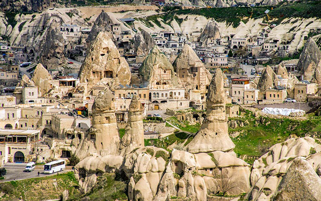 Мирные жители, скрываясь от набегов захватчиков, строили подземные города и выдалбливали убежища в скалах, образованных мягким и податливым вулканическим туфом, а гонимые Римской Империей первые христиане сумели не только выжить, но и положить начало распространению религии, о чем свидетельствуют многочисленные замаскированные в пещерах церкви и монастыри.