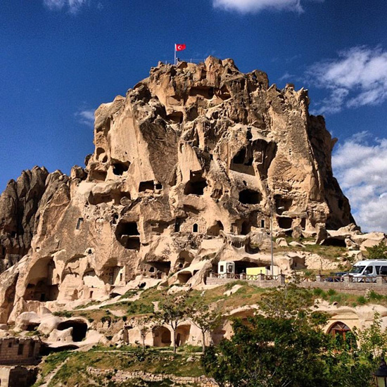 Похожая на огромный муравейник, крепость Учхисар – самая высокая точка региона, со смотровых площадок которой все красоты края открываются как на ладони: вулканы – виновники популярности края, долины с причудливыми образованиями, каньоны и поселения.