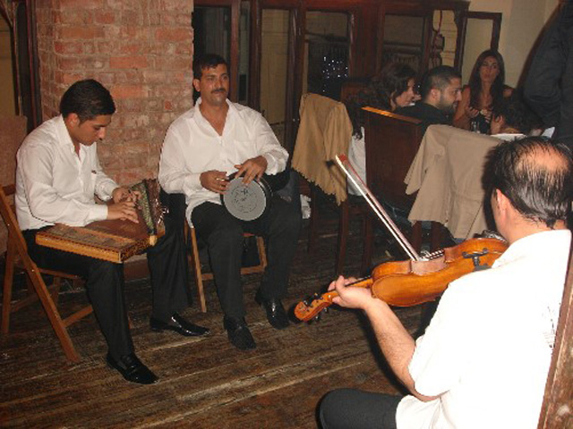 Как правило их - три: канун - турецкие "гусли", скрипка и дарбука - барабан. В процессе выступления или по его окончании аккуратно протяните или положите в карман главному из них гонорар за выступление, на свое усмотрение.