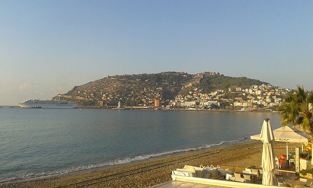 Ноябрьская погода в этом году в Аланье радует - днем до 25 градусов, температура воды - приблизительно столько же. Очень комфортная, что побуждает немногочисленных туристов, в числе которых где-то пополам русских и немцев, устраивать продолжительные заплывы.